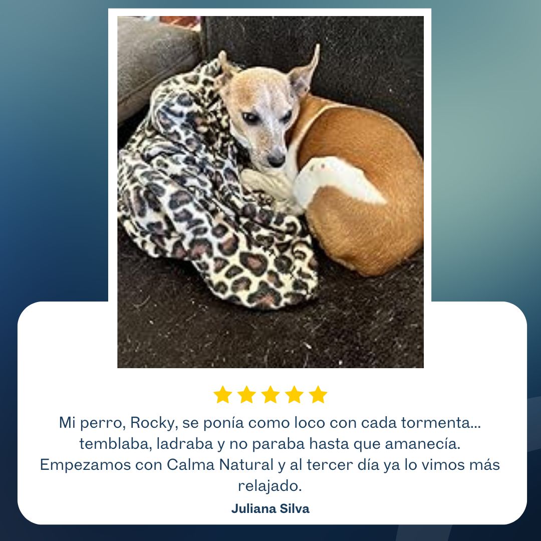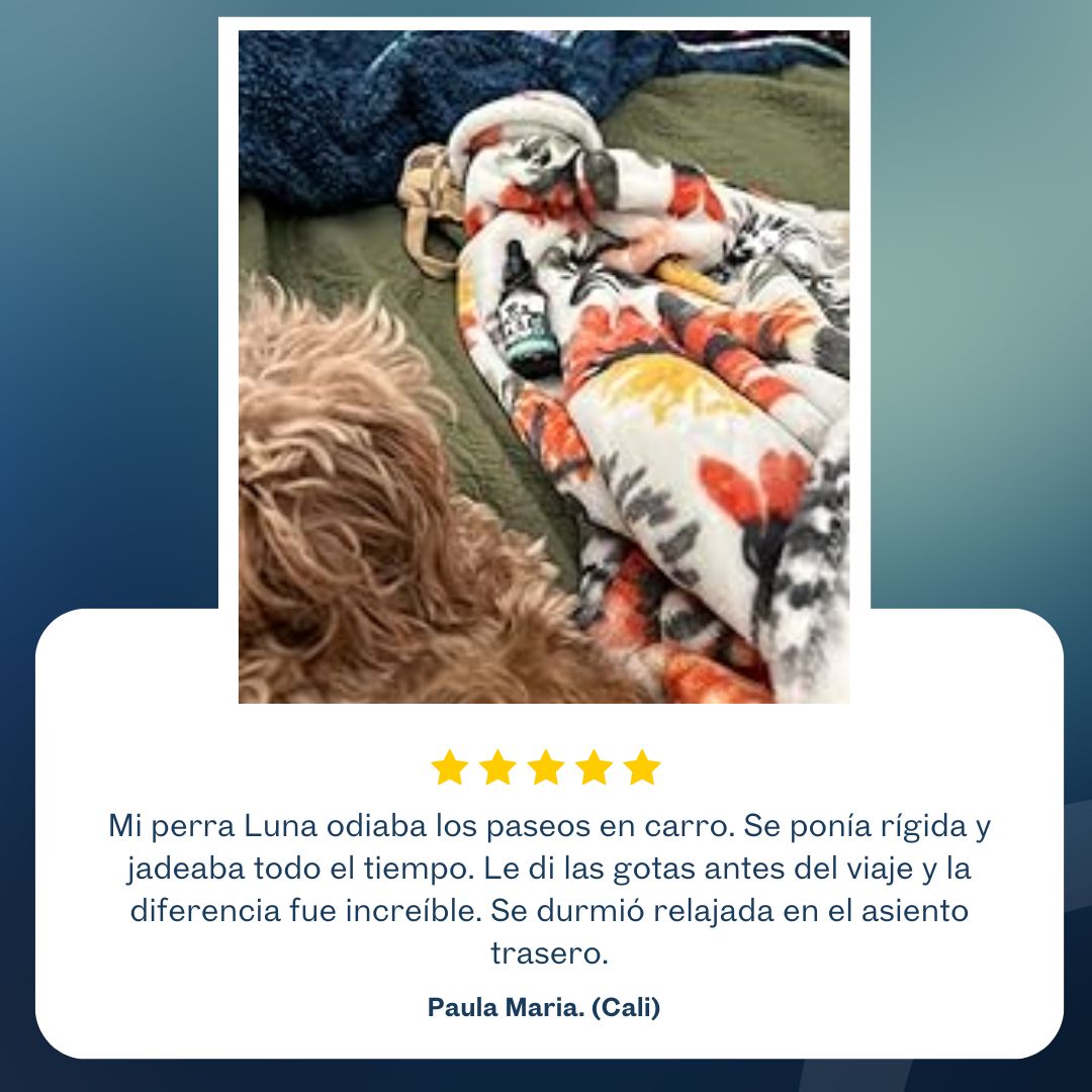Las tormentas, los fuegos artificiales y los viajes en carro ya no tienen por qué ser un drama. Unas gotas al día ayudan a que tu mascota se mantenga serena… sin dormirla, sin efectos raros.